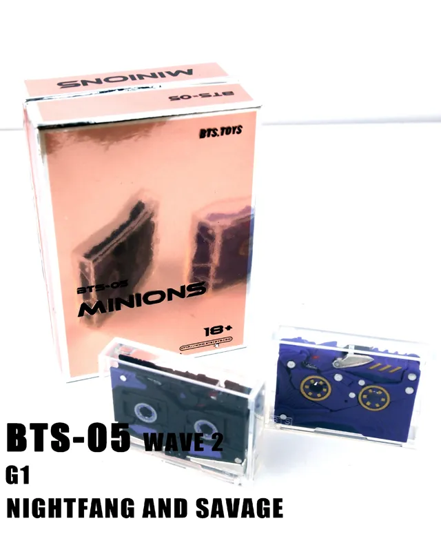 These custom pieces from BTS toys are fully transformable and inspired by G1 cassettes! Also these figures can combine with BTS-05 Tremor and Frequency!