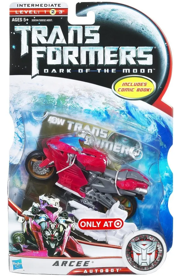 Arcee Exclusive jumps straight out of the Transformers the Movie live action film and into your collection! Arcee Exclusive is Deluxe Class scaled, stands 5-inches tall and transforms from Motorcycle to robot and back.