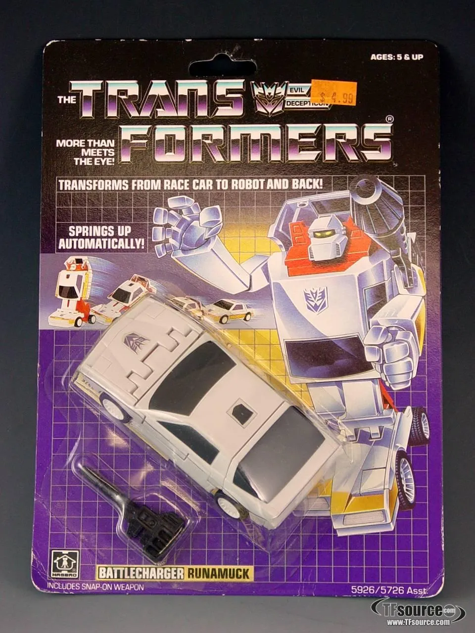 Runamuck transforms into a Pontiac Firebird Trans Am sports car. This is the original figure, still factory sealed after 20 years! Card and bubble condition is as shown.