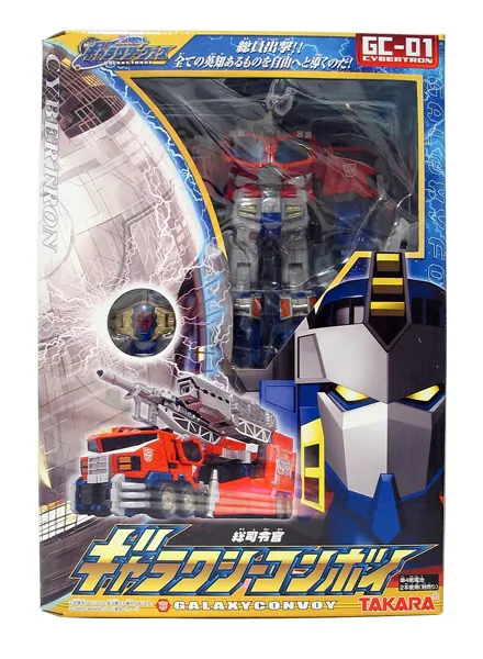 Transformers Galaxy Force was the Japanese Takara Tomy release of the Transformers: Cybertron Toyline. Galaxy Force in Japan and Cybertron in the US was the final toyline in the Transformers Unicron Trilogy and followed both Transformers Energon and Transformers Armada. Toys in this toyline were heavily futuristic space based and included Cyber Keys. These large discs featured designs based on the planet of origin each unlocked pop-out weapons and action features in each toy once plugged into the key slot. These cyber keys were interchangable with any other figures in the line.