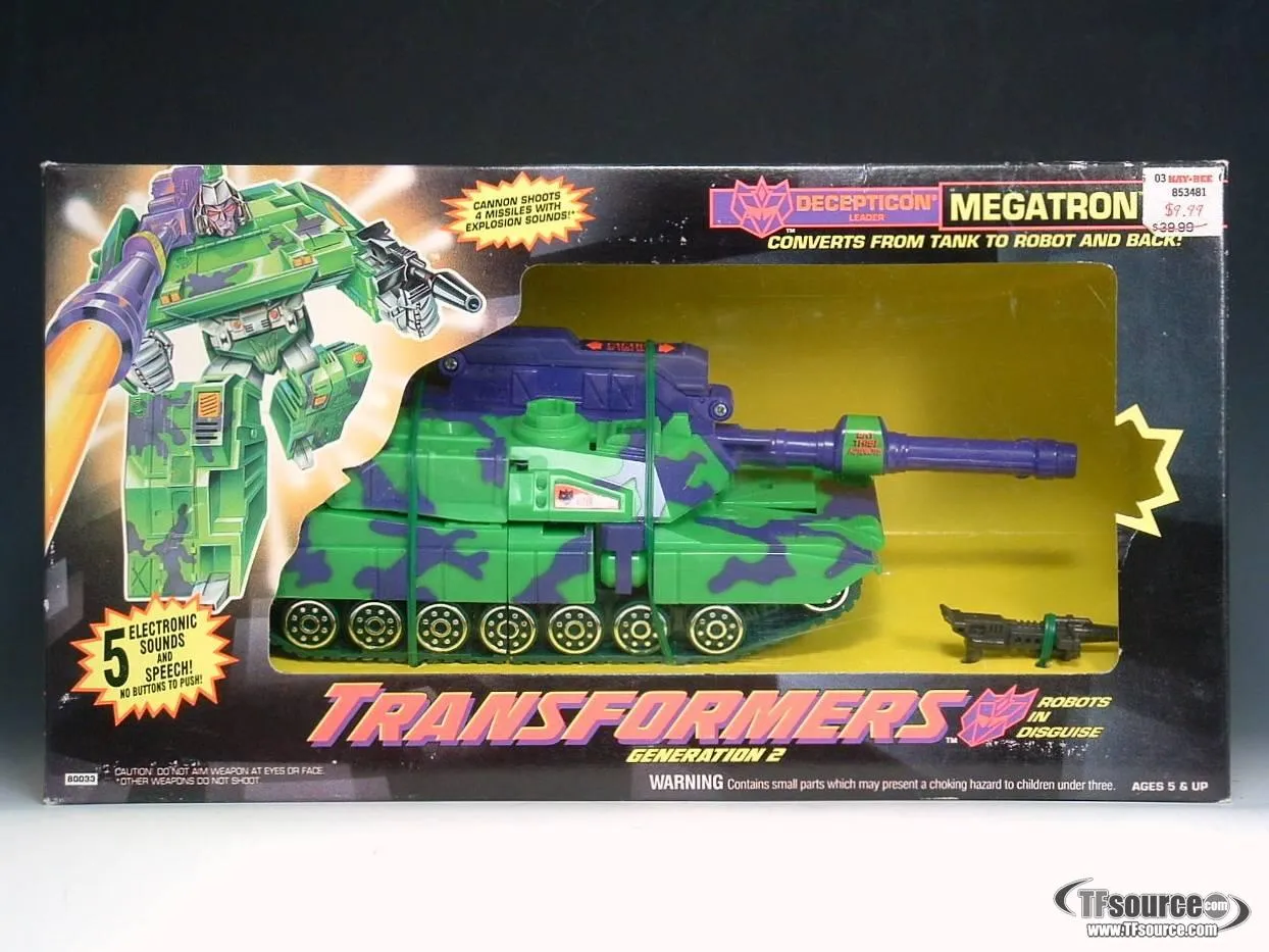 Owing to the inability of Hasbro to re-release the original Megatron because that toy was a pistol, Generation 2 Megatron was released in 1992 as a large green M1A1 Abrams main battle tank.