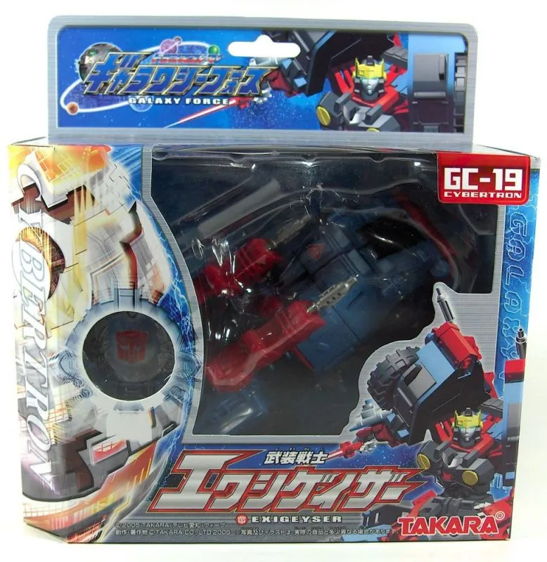 Transformers Cybertron GC-19 Exigeyser is a Deluxe Class scaled figure that stands 5.5-inches tall in robot mode and transforms from robot to Military Vehicle and back.