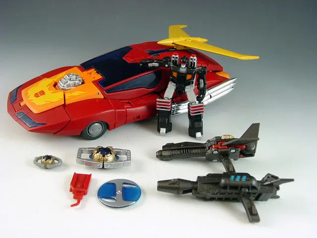 From Takara Tomy Transformers Masterpiece Rodimus Prime Exclusive stands an impressive 9-inches tall in robot mode. Not only is this figure incredibly detailed, but it comes packed with an extinsive array of accessories. Rodimus Prime Exclusive is highly articulated and transforms from a Sports Car to robot and back and as a Masterpiece scaled figure scales with other MP scaled figures in the Transformers Masterpiece toyline. Masterpiece Transformers offer an extreme high attention to detail and jump straight out of the Transformers movies and TV series and into your collection.