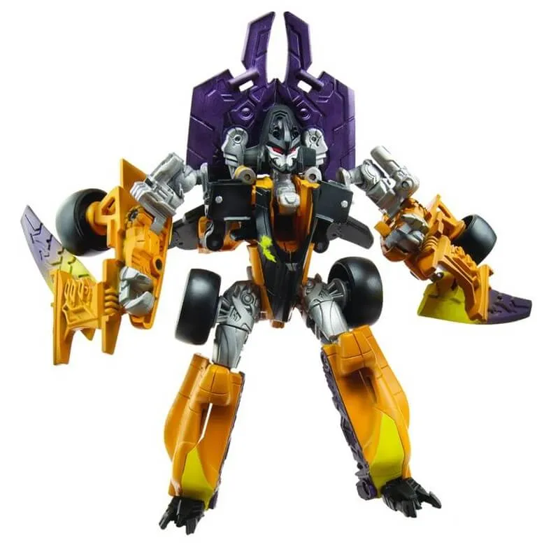 Decepticon Drag Strip with Master Disaster jumps straight out of the Transformers the Movie live action film and into your collection! Decepticon Drag Strip with Master Disaster is Basic Class scaled, stands 4-inches tall and transforms from Race Car to robot and back.