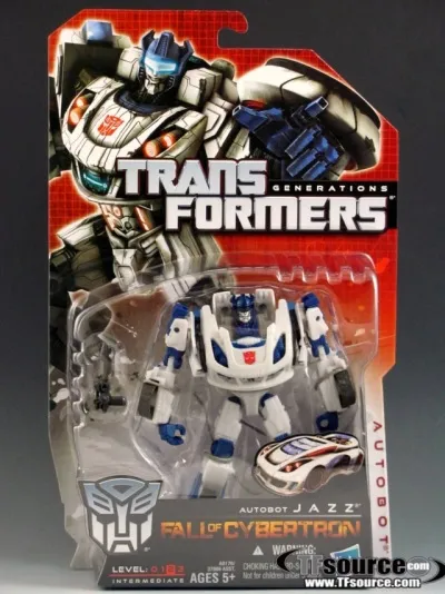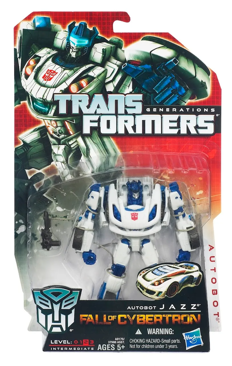 Autobot Jazz is part of the Transformers Generations Fall of Cybertron toyline of Transformers figures. Transformers Generations Autobot Jazz is Deluxe Class scaled, stands 5.5-inches tall in robot mode and taransforms from Futuristic Car to robot and back.