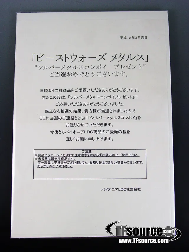 WARNING: All items sold by TFSource are intended for adult collectors. Items may have small parts or other elements not suitable for children under 16 years old.