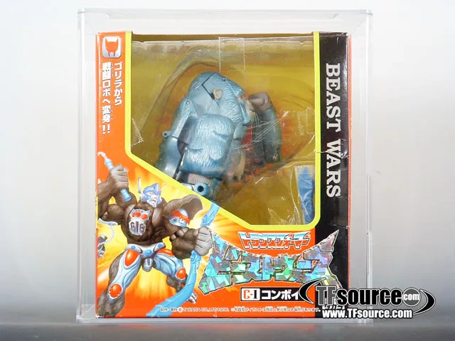 C-1 Blue Beast Convoy Lucky Draw AFA75 was a limited edition figure, that features a blue version of Beast Convoy! Very limited, this piece was limited to just 30 pieces worldwide. This piece was released in 1998 and features two variations, some of the 30 pieces have a sticker on the box commemorating the 20 millionth beast wars figure sold, the other is lacking the sticker. The toy inside is the same.