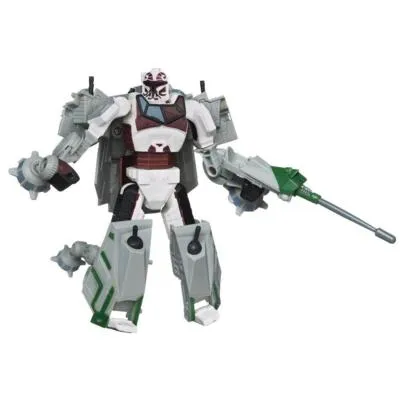 Captain Rex transforms from a white robot to a gray, six-legged AT-TE walker. Like his fellow clone Cody, Rex's largely shellformerish body allows for more humanoid proportions in robot mode than most other Star Wars Transformers.