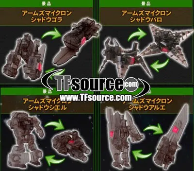 Start your Japanese Transformers Prime Arms Micron collection today with Shadow Arms Micron Store Exclusive Set of 4. Add this highly sought after piece to your collection today at TFSource, your source for Japanese Transformers.