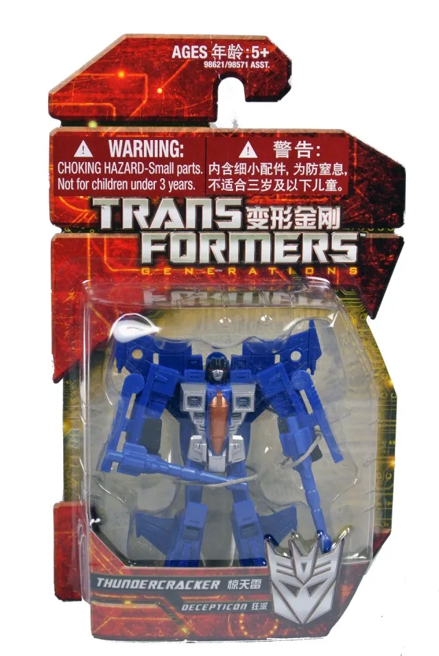 Thundercracker is part of the Transformers Generations GDO series of Transformers figures. GDO Thundercracker is Legends Class scaled, stands 4.0-inches tall in robot mode and taransforms from Fighter Jet to robot and back.
