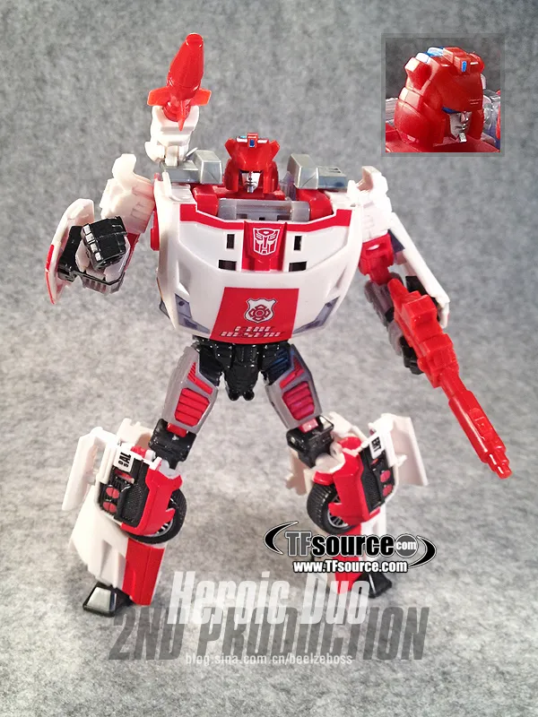 1 x New Headsculpt of Red Alert, 1 x RedAlert's shoulder-mounted missile launcher, 1 x Red Alert's High Energy Particle Beam Rifle, 2 x Sideswipe's Piledriver, 2 x Sideswipe's Shoulder Mounted Launcher, 1 x Sideswipe's Photon Rifle, 2 x Shoulder add-on Unit