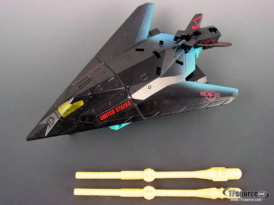 Air Raid's second Generation 2 appearance was a redeco of the Cyberjet Skyjack, transforming into an F-117A Nighthawk.