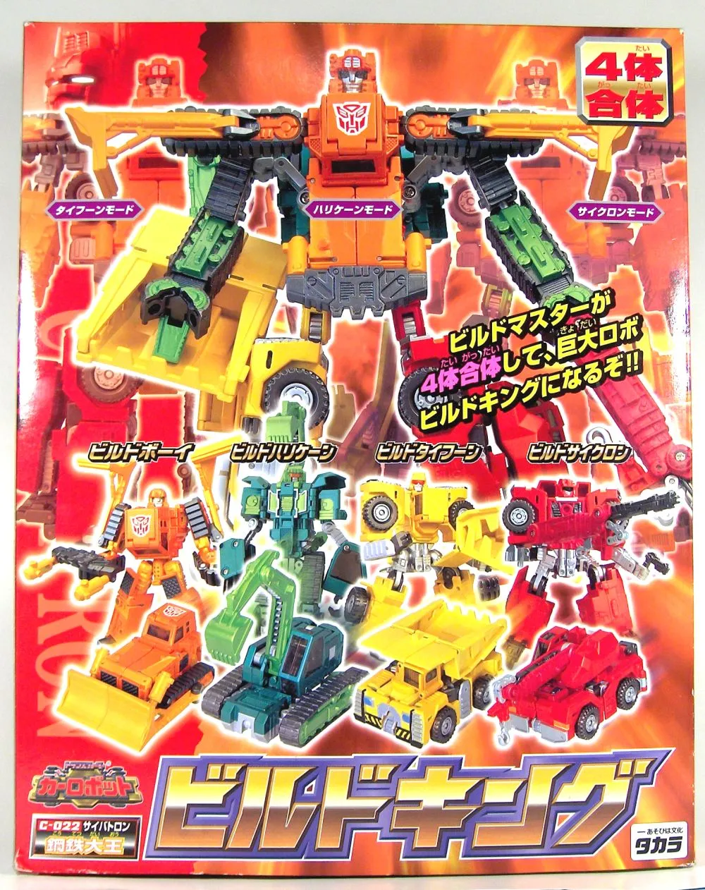 Build King is formed by combining Wedge, Heavy Load, Hightower and Grimlock, with Wedge forming the torso while the other three can all be used as either a single leg or both arms. Figure has been opened.