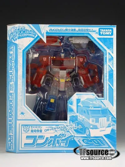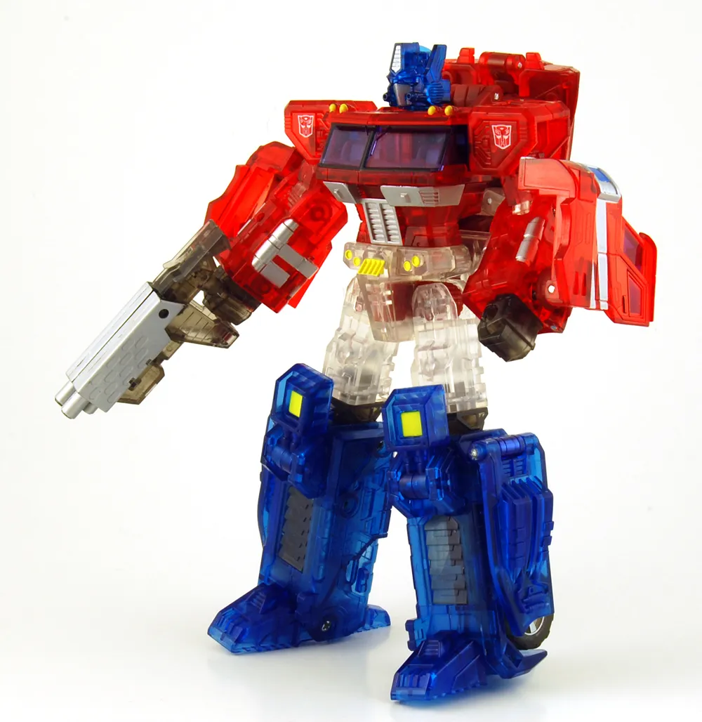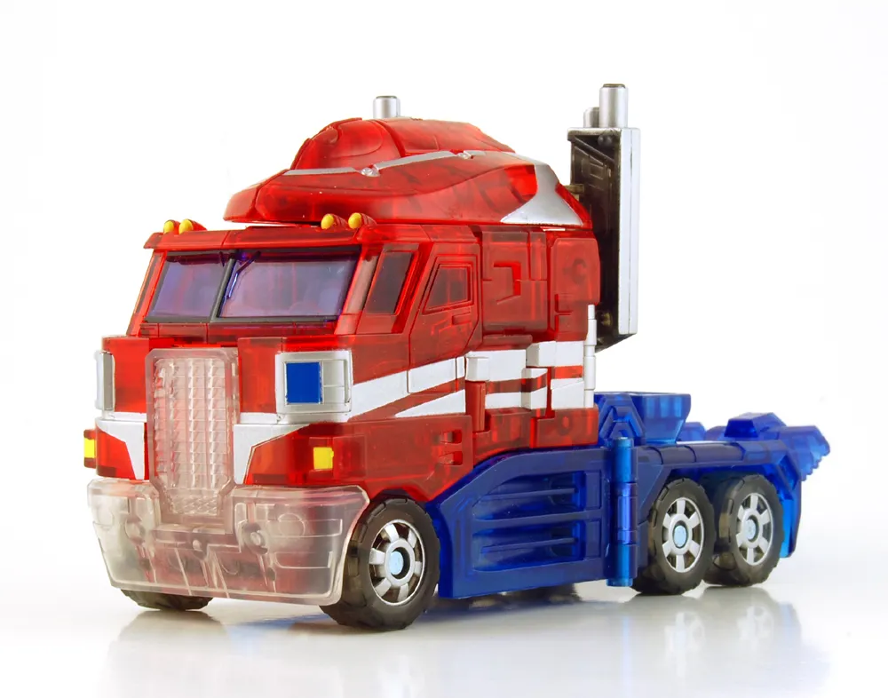 Crystal Convoy Tokyo Toy Fair Exclusive is part of Takara Tomy's Henkei Classics line which was available exclusively in Japan. Crystal Convoy Tokyo Toy Fair Exclusive is Voyager Class-scaled, stands approximately 7-inches tall in robot mode and transforms from a Semi Truck to robot and back.