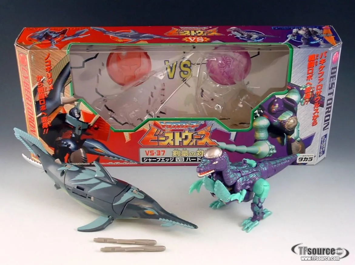 Transformers Beast Wars VS-37 Sharp Edge VS Hardhead Master Fencers Showdown is a Deluxe Class scaled figure that stands 5.5-inches tall in robot mode and transforms from robot to Shark and back.