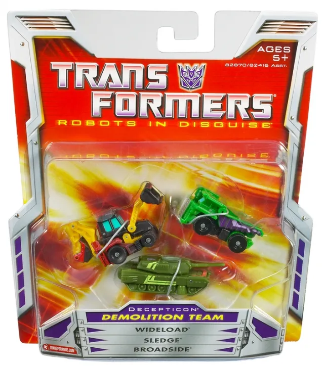 Transformers Classics Robots in Disguise Mini-con Demolitions Team transforms from a Construction Vehicles to robot and back. Demolitions Team is a Mini-con scale Transformers figure that stands approximately 1.0-inches tall in robot mode.