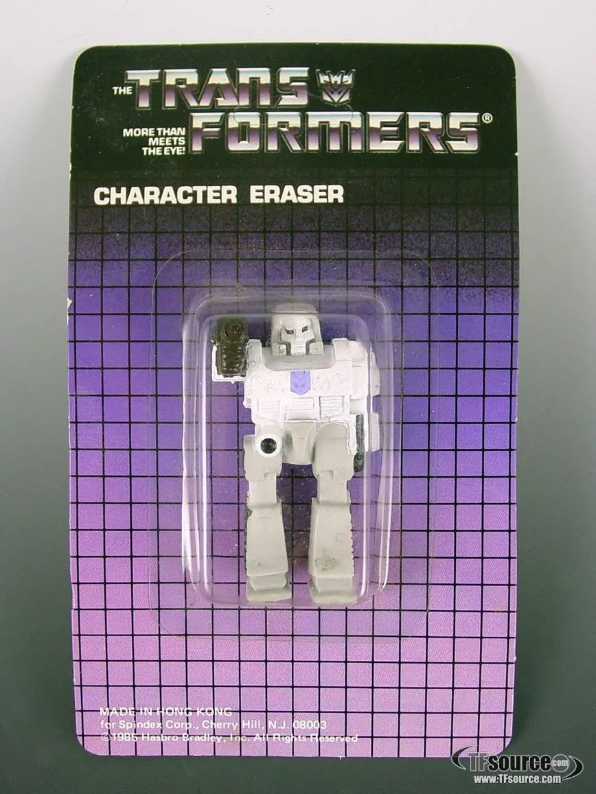 One of three different "character erasers" produced by Spindex, this small Megatron figurine came on either a red or purple blister card.