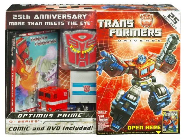 Add this Optimus Prime G1 25th Anniversary Set to your Transformers Universe Collection today. Add this highly sought-after piece to your collection at TFSource, your source for Hasbro Transformers Collectible Action Figures.