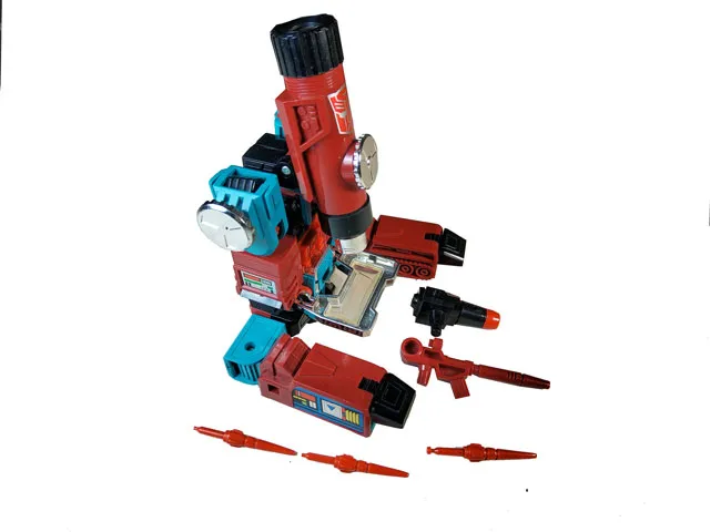 Formerly a Microchange MC-20 Micro Scope, Perceptor transforms into a predominantly red, functional microscope. Figure comes in great condition, with slight chrome wear.