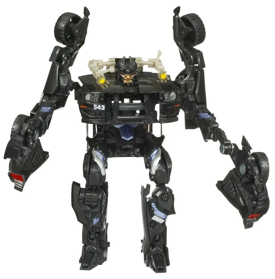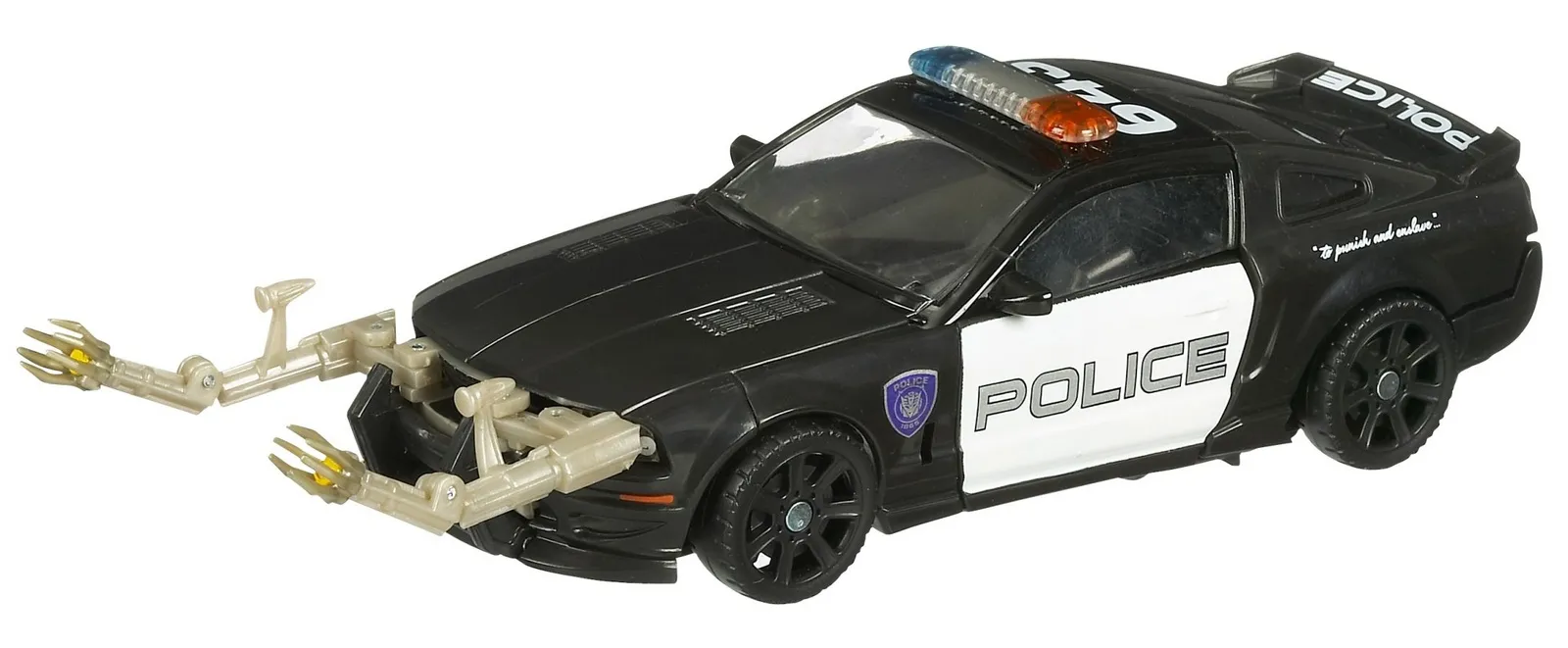 Interrogator Barricade jumps straight out of the Transformers the Movie live action film and into your collection! Interrogator Barricade is Deluxe Class scaled, stands 5.5-inches tall and transforms from Police Car to robot and back.