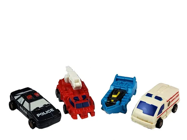 The Rescue Patrol consists of:Fixit, Red Hot, Seawatch ,Stakeout. Slight rust on wheels on all figures.