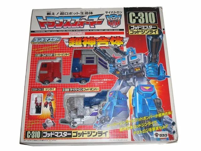 The God Ginrai gift set was reissued in Japan in 2002 with the notable modification of blue eyes for the small Ginrai robot and a slightly different shade of red paint on the cab.