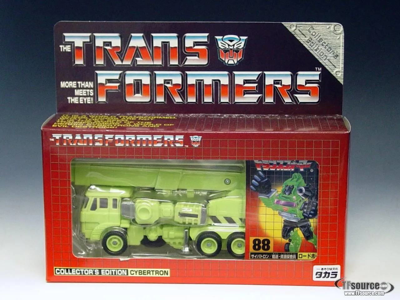 One of the first original-deco toys released as part of the e-HOBBY exclusive series, RoadHauler is a redeco of the Autobot Grapple, transforming into a Mitsubishi Fuso hook-crane truck.
