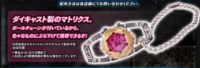 This matrix keychain is a campaign exclusive, limited to just 200 pieces worldwide! Works with your Optimus Prime MP-10 figure, and comes with a purple tint and is made of die-cast metal and plastic. MP-10 Figure sold separately. Additional photos courtesy of Alfies2000's blog! Note: 200 pieces of each of the matrix colors will be made.