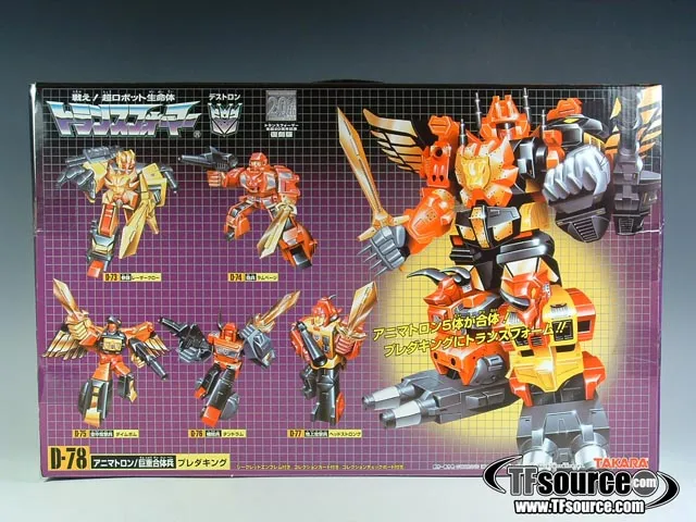 Long ago sold out, the Reissue Predaking Giftset is a remake of the original Japanese G1 version, including the \"suitcase\" style packaging. Includes handle, and five die-cast reissue Predacons! Item is factory sealed, and box is in great condition as shown. Note: on this reissue there are multiple pieces of tape on each flap to keep the item closed, and there may be pieces below that are broken, TFsource is not responsible for this, as they all came factory sealed from the manufacturer this way.