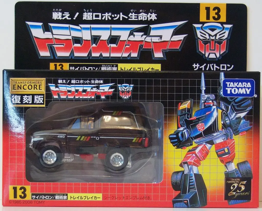 13 Trailbreaker is part of Takara Tomy's Transformers Encore series which features reissues of original Transformers G1 Generation one toys made back in the 80's. These reissues of the original robots in disguise feature the original toys in retro Japanese G1 style Takara Transformers packaging.