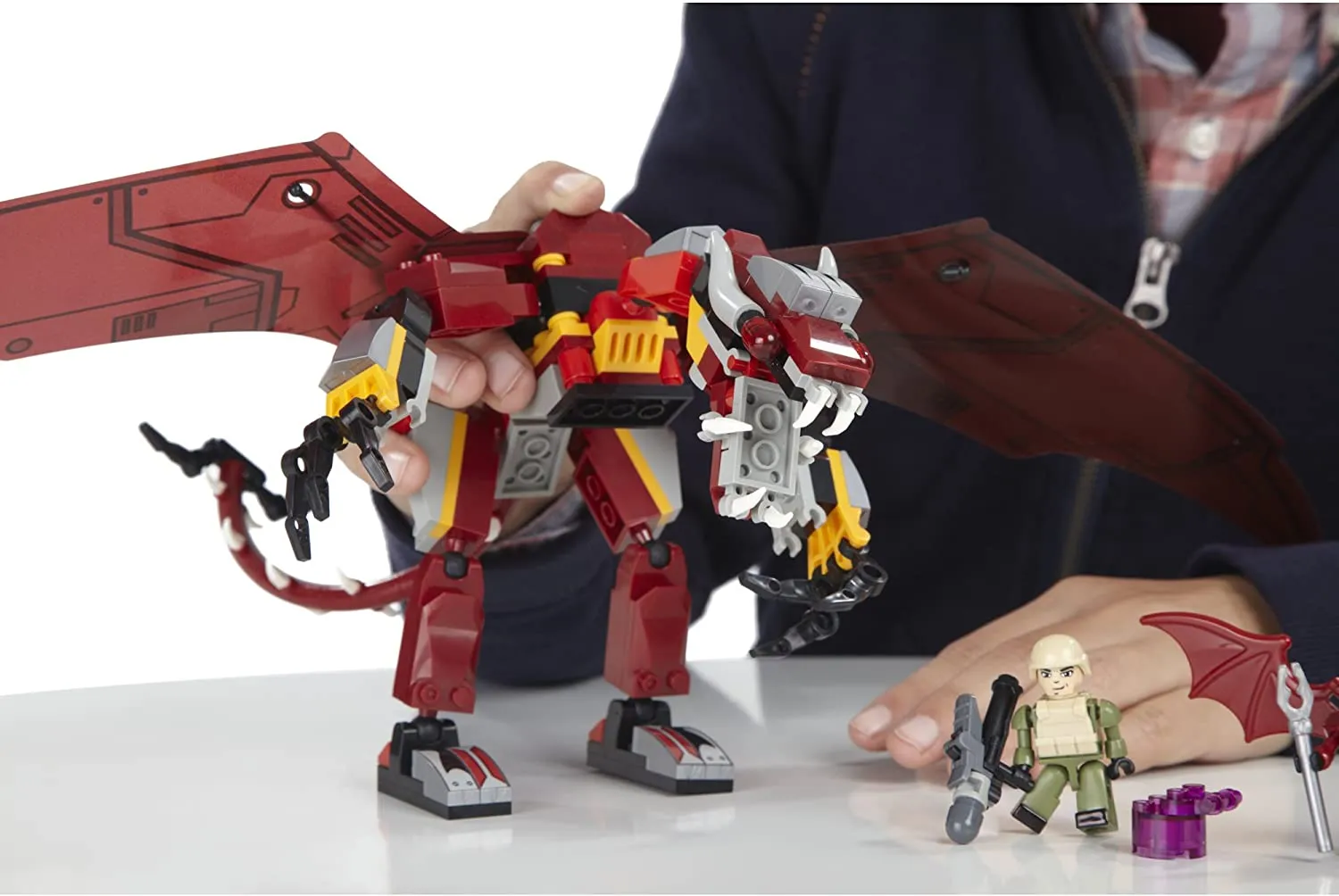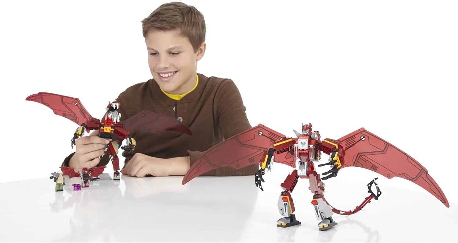 KRE-O Transformers Beast Hunters Ripclaw Strike building set includes 199 pieces to build the Predacon cyber-dragon Ripclaw in dragon mode or robot mode for twice the building play. You can make the fiery-red wings really flap in dragon mode or robot mode using the unique action brick. Bring the 2 KREON figures into the adventure and unleash your imagination!