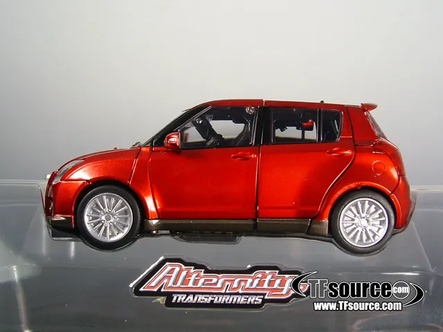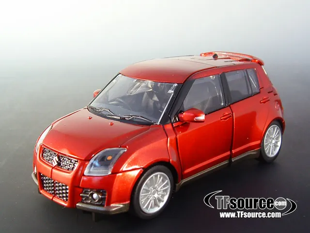 A-03 Bumblebee Red Pearl | Suzuki Swift Sport is a 1:32 scale figure that is part of the Transformers Alternity line. A-03 Bumblebee Red Pearl | Suzuki Swift Sport is an officially licensed figure by the respective car company and transforms from sports car to robot and back.