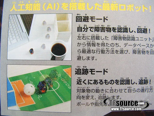 The Robo-Q line in Japan by Takara/Tomy was the world's smallest robots (3.4 cm or 1.3 inches in height) that are remote controlled. Using sensors Robo-Q can maneuver throughout a maze, move around a soccer ball and much more! Runs for around 3-5 minutes per battery charge. Your friend can choose Bumblebee and play against your friend!