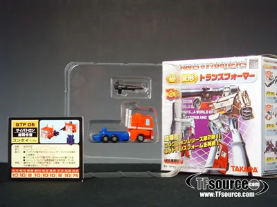 Start your WST Worlds Smallest Transformers collection today with TFG06 Convoy Optimus Prime Anime Version. Add this highly sought after piece to your collection today at TFSource, your source for Japanese Transformers.