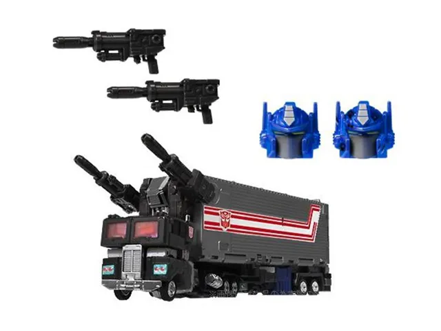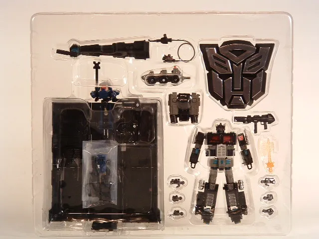 Transformers Hybrid Style TTHS-02 Black Version Convoy is highly articulated and comes with an insane amount of additional weapons and accessories including: Trailer/Combat Deck, Roller, Ion blaster, Gas pump, Energon-axe, Autobot Matrix of Leadership, Rocket Pack, 8 x Hands (4 left, 4 right), 1 x Autobot insignia stand. Transformers Hybrid Style was a limited run of highly articulated Transformers figures designed by legendary designer Shoji Kawamori. Transformers Hybrid Style was a Transformers Toyline available exclsuively in Japan.