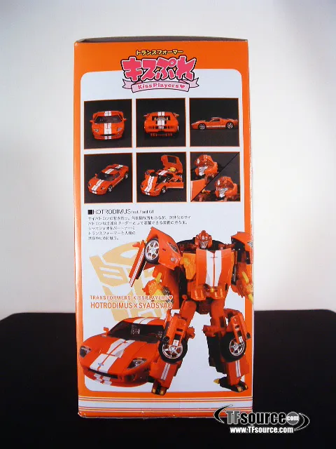 Hot Rodimus with Syao Syao is part of Takara Tomy's Kiss Play or Kiss Players line. Hot Rodimus with Syao Syao is a Japanese exclusive figure featuring a binaltech vehicle recolored and including their female partner. Each figure includes not only a fully transformable Transformers figure but also an Audio CD featuring Japanese radio story.