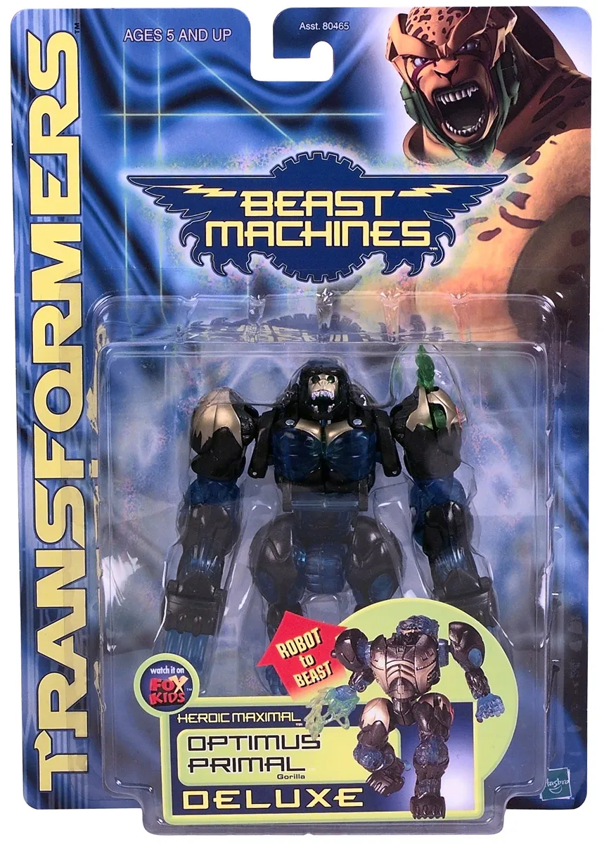 Deluxe Class Optimus Primal transforms from an Gorilla to robot and back. Optimus Primal is Deluxe Class and stands 5.5-inches tall in robot mode.