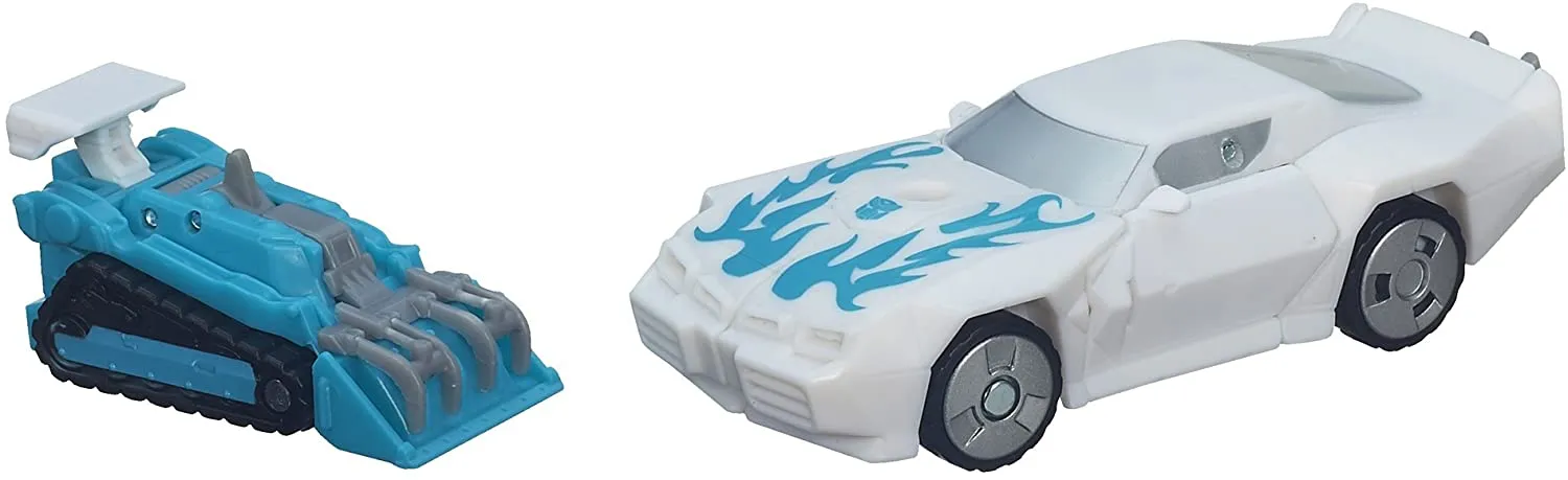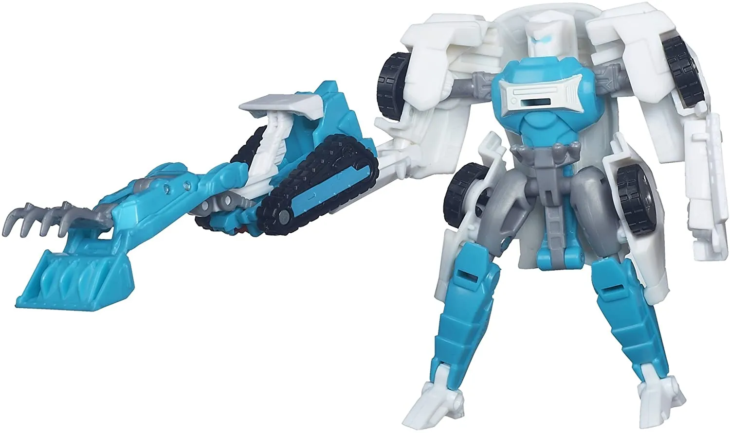 These two Autobots both have a habit of digging themselves into holes. Groundbuster will dig into almost anything that's underground, holing up there to plot his next move. Autobot Tailgate never hesitates to dig himself a hole by making up stories of his exploits. He wouldn't even stop short of claiming to be one of the original Primes, if the occasion called for it. Bring some road fury to your Transformers adventures with this pair of Autobot warrior figures! Your Autobot Tailgate figure can take his Decepticon enemies on in robot mode and then roar off to the next battle in sports car mode. But your Groundbuster figure will tear up the road to block pursuit in bulldozer mode! Will the Decepticons be able to handle this pair of road warriors? Only you can decide!