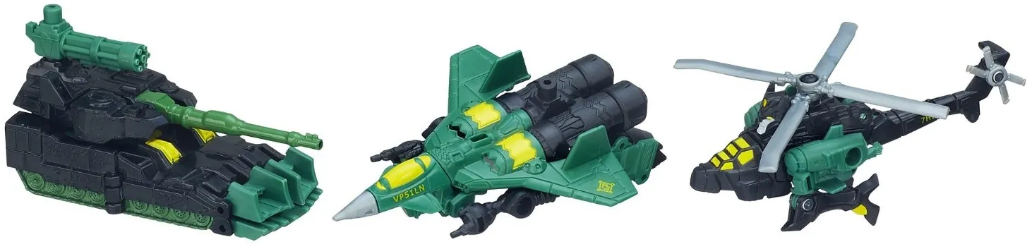 Convert, arm and attack with all the Transformers action you can handle! This Mini-Con Assault Team set includes Windshear, Heavytread and Runway Min-Con figures. Individually, they're just the team to create trouble. But when they need to unleash a devastating attack, combine them into Centuritron mode, where their force is gathered together to form a massive robot warrior! Whatever mode the Mini-Con Assault Team is in, their enemies will think twice before taking them on!