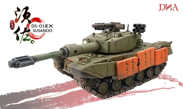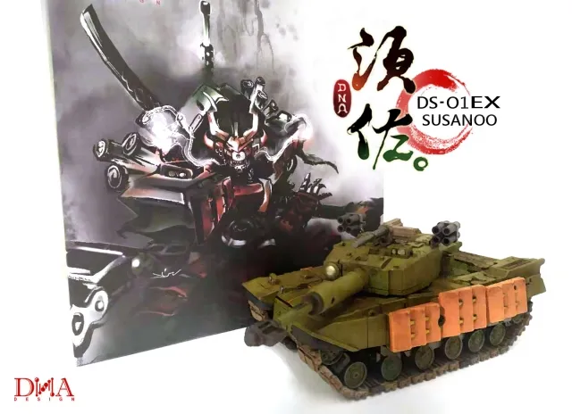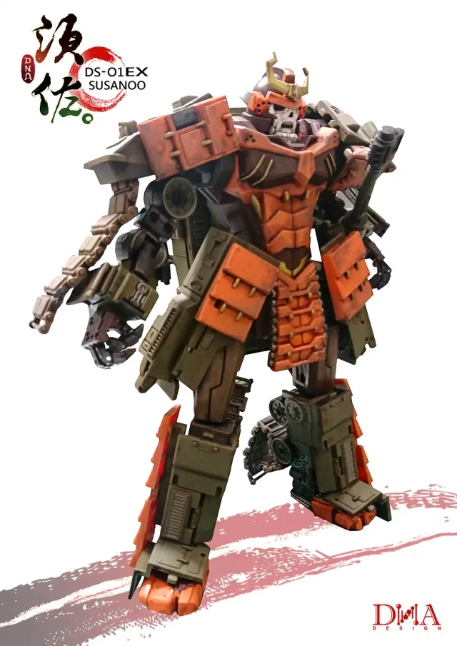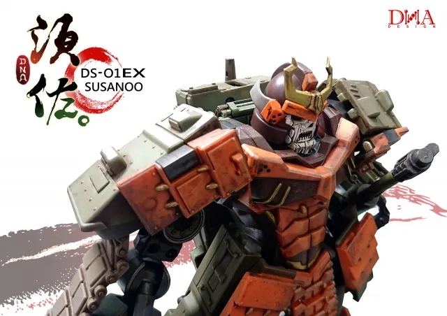 DNA Designs first official figure is DS-01EX Susanoo Weathering Effect Version! Highly articulated and made of PVC, ABS and die-cast this masterpiece scaled figure transforms from Bushido robot to tank and back! Figure stands approximately 22CM/8.7 inches tall in robot mode.