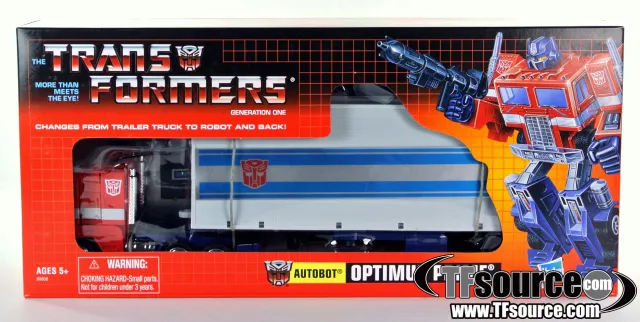 Transformers G1 Optimus Prime is now reborn into your Transformers collection reissued in all of his Generation one glory and in minty fresh condition. Included are reissues of the original weaponry and accessories included back during the original relase of Transformers G1 Optimus Prime.