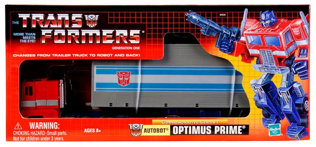 The Transformers Generation One Commemorative Series is a store exclusive line featuring reissues of the original Generation 1 toys. Featuring both G1 Autobots and Decepticons this series was released in the early 2000's and includes primarily main Transformers G1 characters originally released in 1984-1986. Each figure comes in unique Commemorative Series window packaging allow collectors to open the front flap of the toy and see each Transformer figure without having to break the seal on the sides of the box.