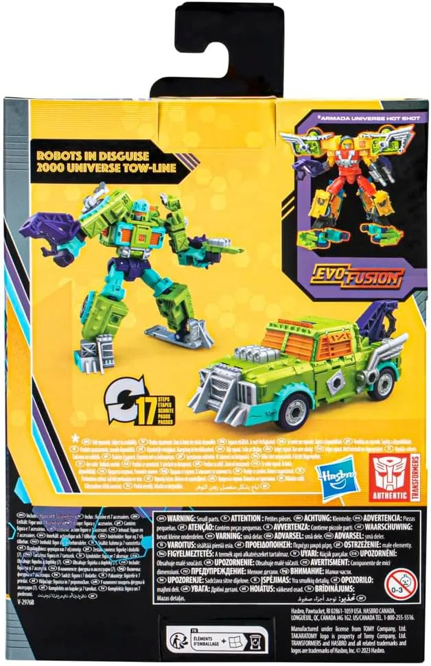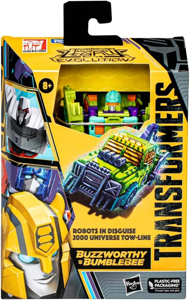 This Tow-Line Robots in Disguise 2000 Deluxe Class | Transformers Generations Buzzworthy Bumblebee returns from the Transformers Robots in Disguise 2000 line and is masterly reborn in the Buzzworthy Bumblebee Transformers series. Transforms from tow truck to robot and back and is deluxe scaled.