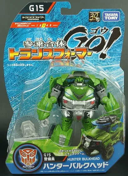 G15 Hunter Bulkhead is a Japanese Exclusive figure released by Takara Tomy in Japan. G15 Hunter Bulkhead jumps out of the Transformers Go! Anime series and into your collection.