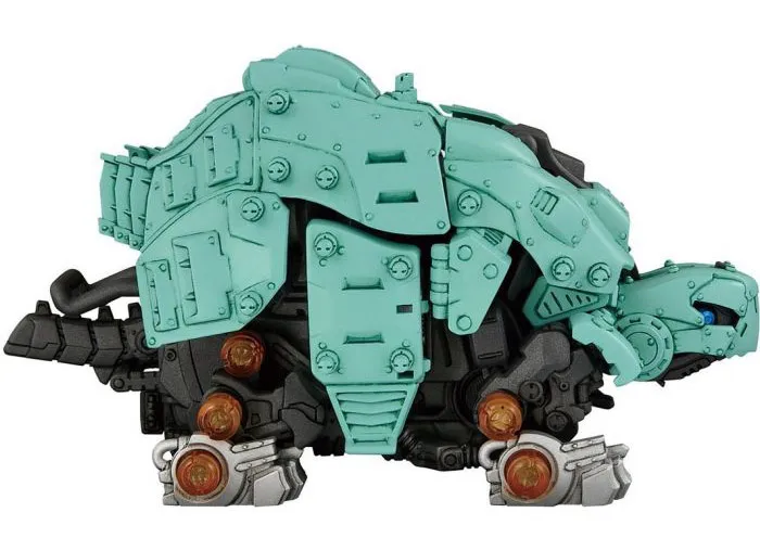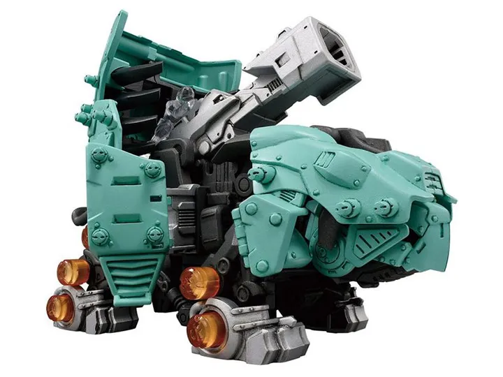 The Gannontoise, piloted by Onigiri from the Zoids Wild anime series, will walk and swing its head and tail up and down, and you can trigger the Wild Blast finishing move and the revelation of its huge cannon!