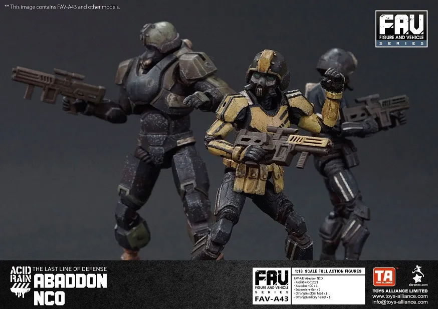 The 1/18 scale Acid Rain world of military figures, vehicles and accessories continues with this FAV-A43 Abbadon NCO figure!