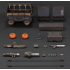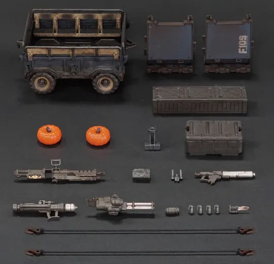 This set includes a variety of heavy weapons and camp items and can also be used by other 1:18 Acid Rain World action figures.