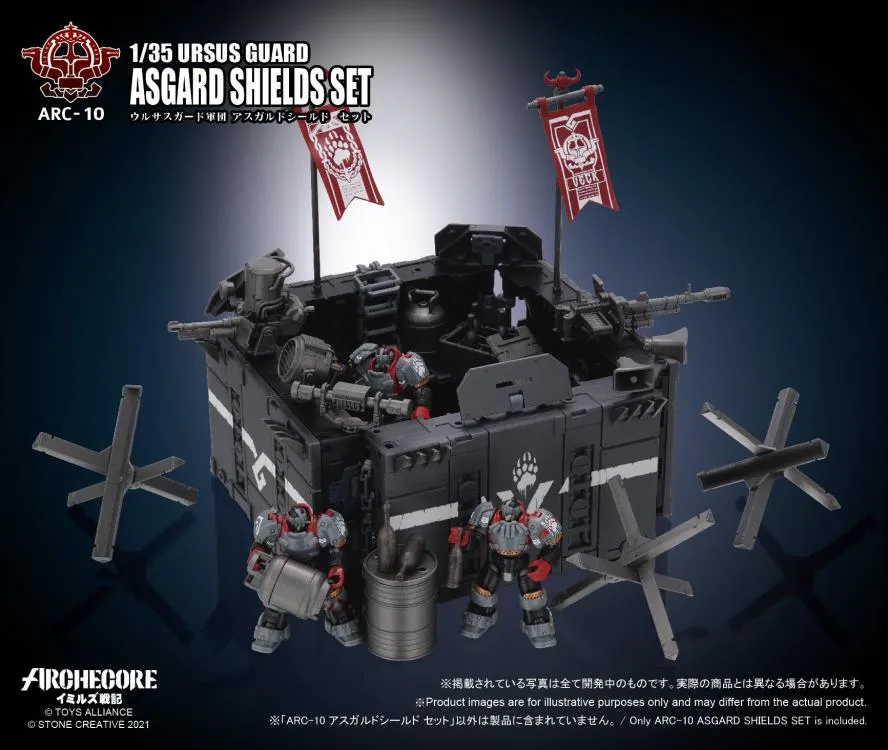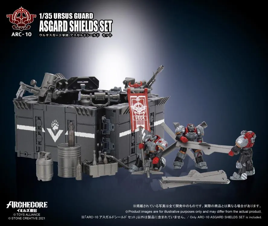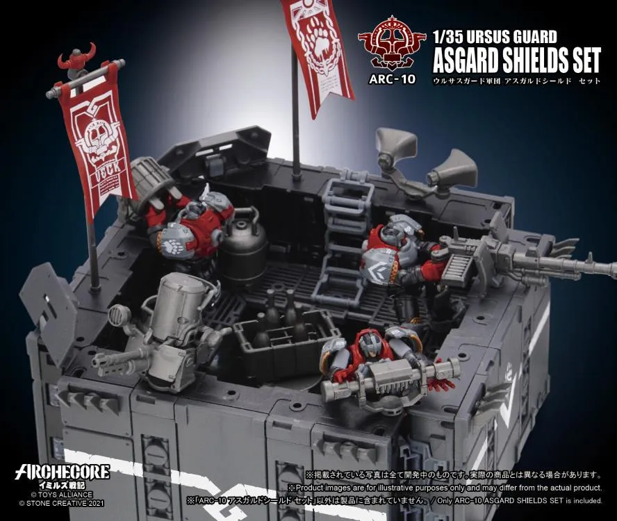 The 1/35 scale Archecore - Saga of Ymirus world of military figures, vehicles, and accessories continues with this ARC-10 Ursus Guard Asgard Shields set!