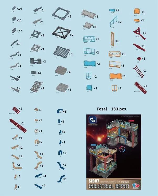 All parts of the SIB system are interchangeable, allowing you to freely customize, modify, or create multiple scenes. Each set is compatible with 1/24 and 1/18 scale action figures, or 2.5 to 3.75-inch figures; you can also modify to any other scales or sizes. When completed, the diorama is in 3D, so not only can it face 1 side, it can also display the figures from any angle.