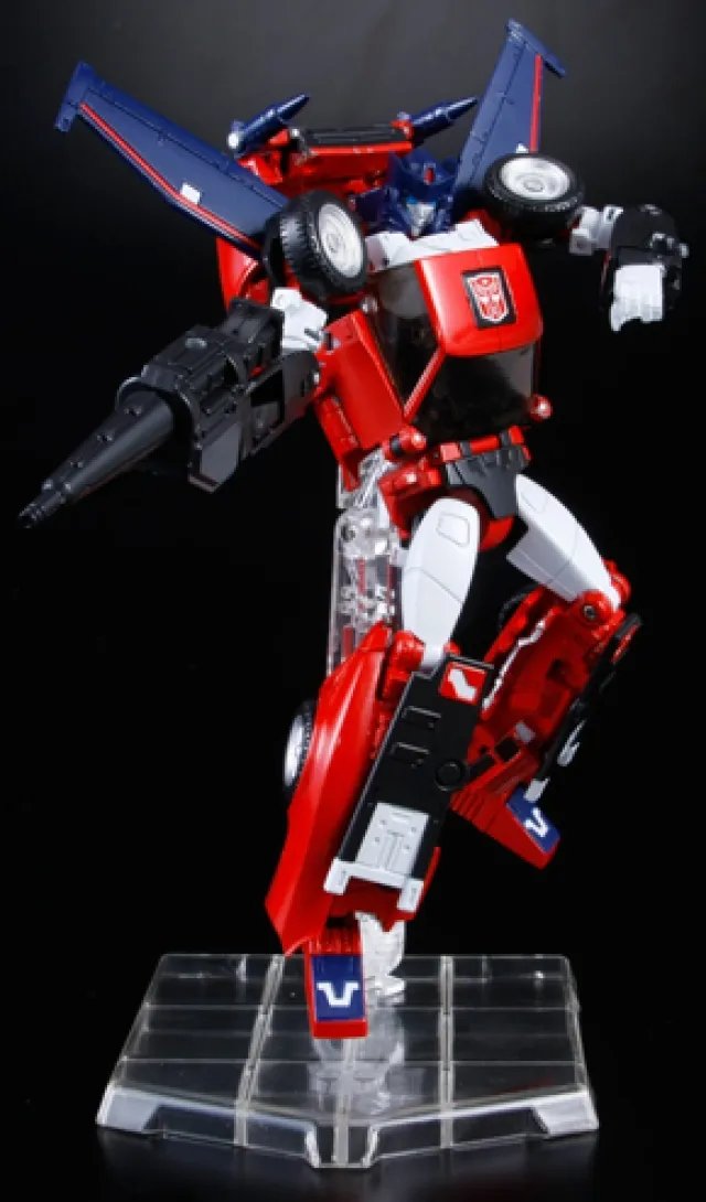 This exclusive Takara Tomy Masterpiece scaled flight stand allows for collectors to display their Masterpiece scaled figures in various modes. Transformers Masterpiece Flight Stand Official Masterpiece Transformers Stand Clear Version comes in transparent plastic and could attach to figures such as MP-25 Tracks, MP-26 Road Rage and LG10 Arcee. Figures sold separately.